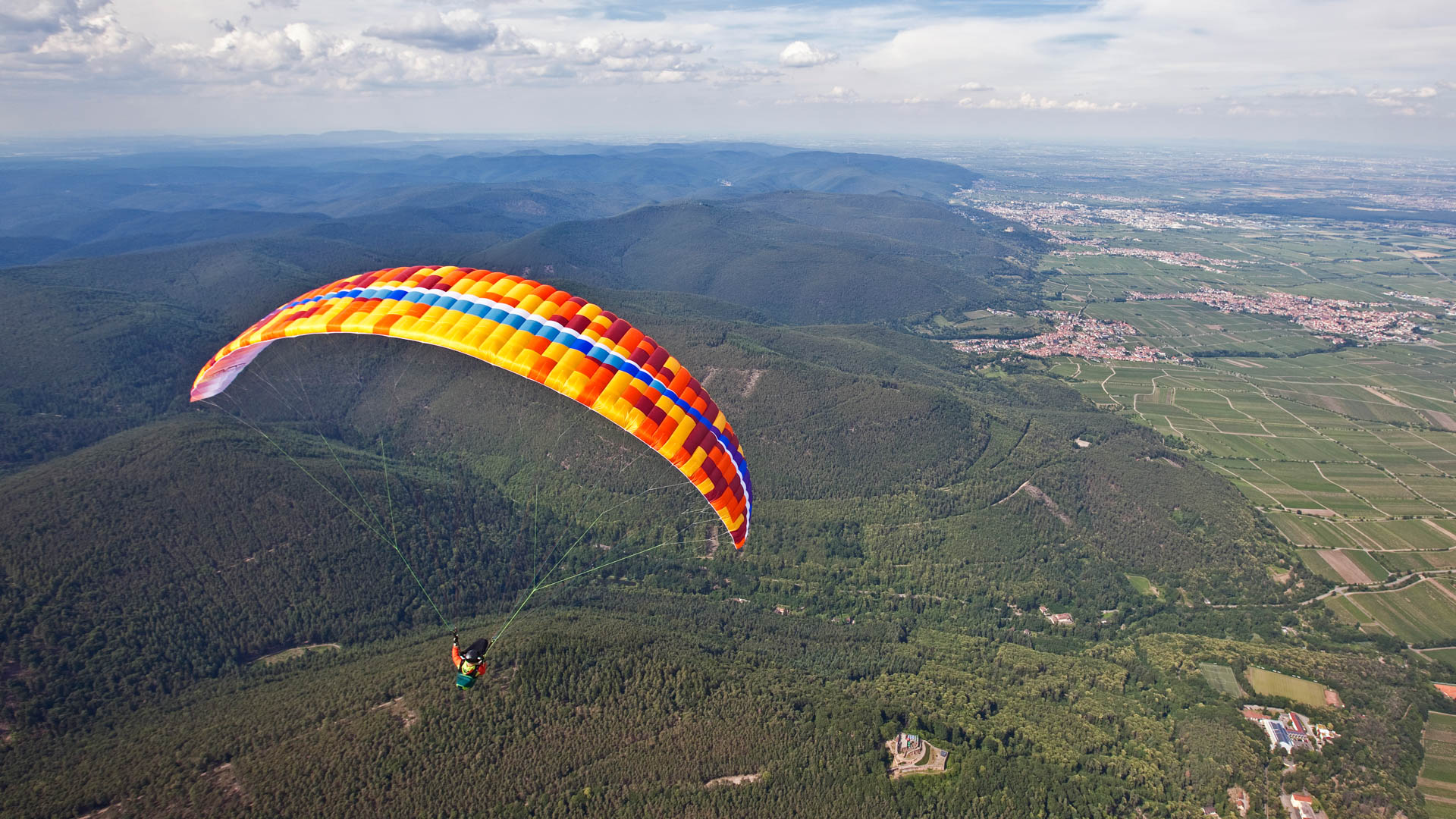 Streckenflüge entlang der Hardtkante sind - abgesehen von spärlichen Außenlademöglichkeiten - relativ einfach. Der Blick über den Pfälzer Wald auf der einen Seite und über die Weinberge in die weite Rheinebene auf der anderen Seite ist grandios. Der Startplatz ist einfach und für unsere Verhältnisse recht großzügig. Die Landesituation am Blätti (wie wir ihn nennen) gestaltet sich allerdings diffizil. Vielleicht auch ein Grund, warum wir von hier aus so gerne auf Strecke gehen?