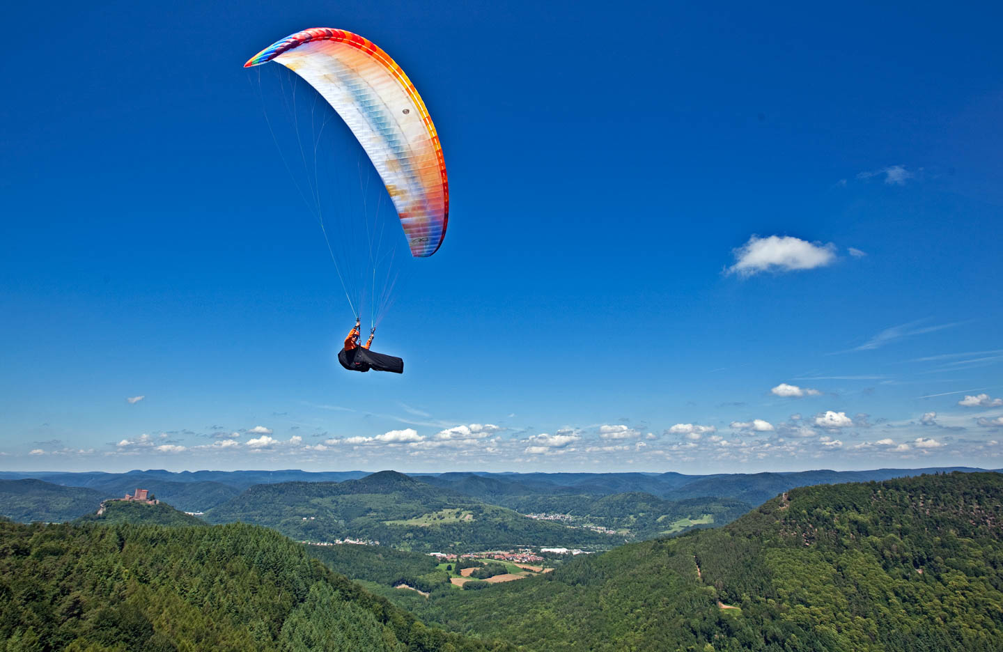 Bist du hier etwas über Startplatzhöhe, kannst du über das Tal von Eschbach (in einem weiten Bogen nach Ost ausholen, Taldüse ohne Landemöglichkeit) und am Gegenhang unterhalb der Madenburg wieder Anschluss finden. Nach Süden geht es dann bequem weiter bis Klingenmünster, wo es große Wiesen zum Landen gibt. Auch unterhalb der Madenburg findest du einen Landeplatz mit Windsack nahe bei der Straße. Ein schöner kleiner Streckenflug mit netten Herausforderungen und Belohnungen!